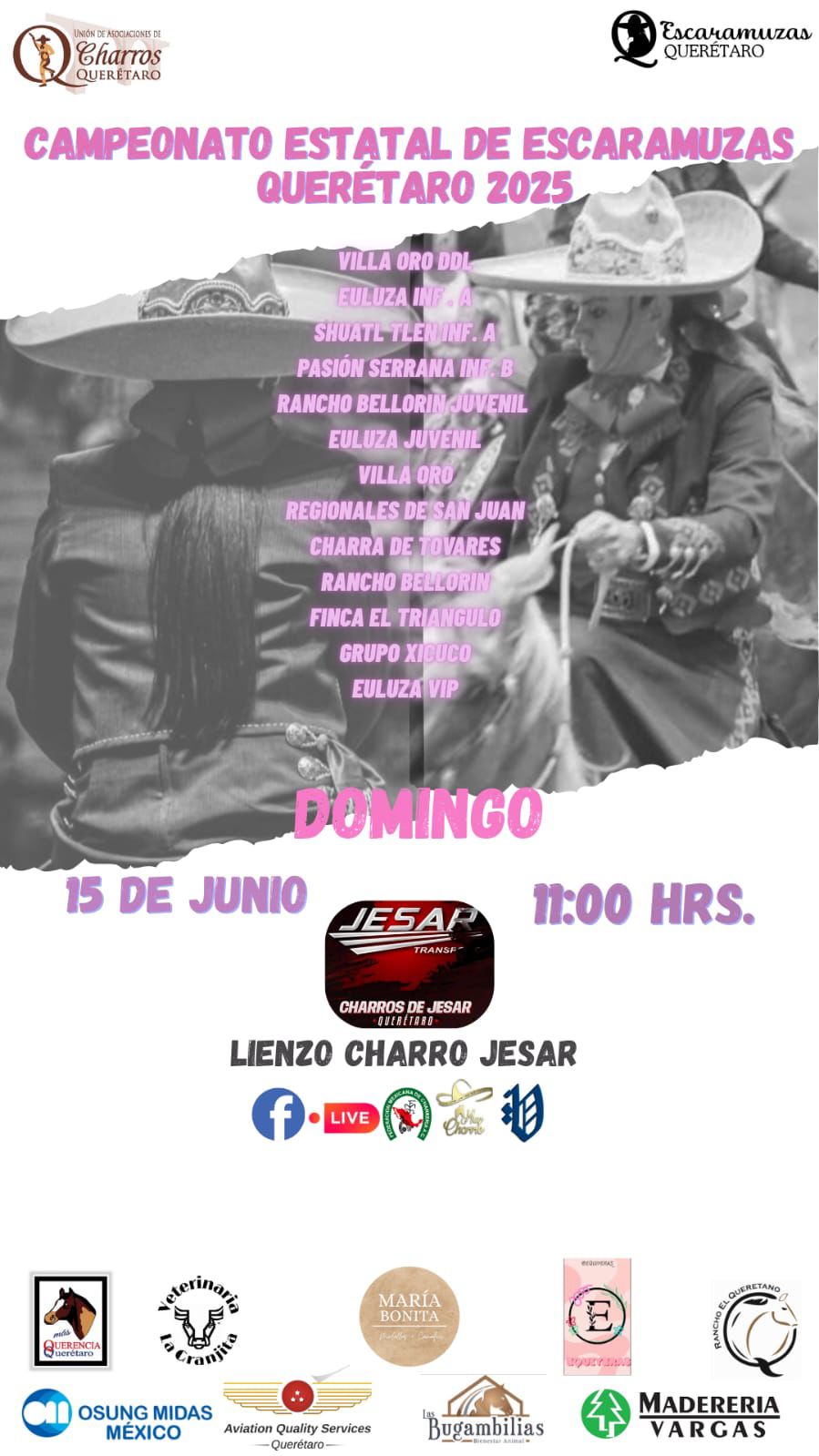 Como parte del calendario oficial, se ha confirmado que el domingo 15 de junio será el turno de las Escaramuzas, quienes se presentarán también en el lienzo de JESAR, en el término municipal de San Juan del Río.